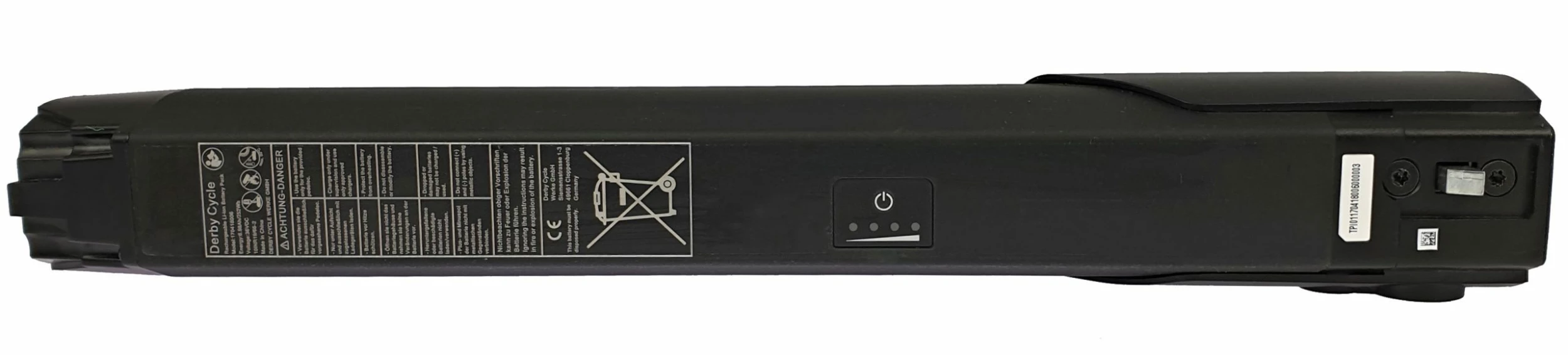 La batterie Groove Next Lithium-ion 252 Wh, 36 V, 7 Ah est la dernière génération de batterie Derby Cycle et convient pour tous les vélos électriques équipés d’un moteur Groove Next. La particularité de la batterie Groove Next est qu’elle est entièrement intégrée dans le cadre. En plus d’améliorer l’esthétique du vélo, cette intégration complète de la batterie Groove Next contribue à mieux la protéger des intempéries et du vol.