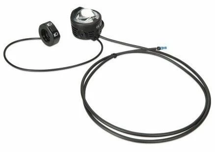 Grâce à la commande au guidon, spécialement conçue pour les vélos électriques, vous pouvez passer du feu de croisement au feu de route en quelques fractions de seconde. Pour ne pas oublier de repasser en feu de croisement lorsque vous croisez un autre usager, le symbole du bouton brille en bleu ou en vert pour vous indiquer si vous êtes en feu de croisement ou de route.